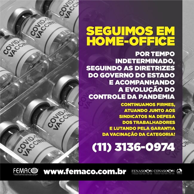 A FEMACO, preocupada com o avanço da pandemia da Covid-19, vem a público informar que, por tempo indeterminado, seguirá fechada, exercendo todos os trabalhos em Home Office. A decisão se justifica em razão da ameaça que representa a Covid-19 a todos, sobretudo neste momento onde os principais hospitais do país estão à beira de um verdadeiro colapso, sem estrutura em leitos e insumos para atender àqueles que mais necessitam. A FEMACO seguirá respeitando e preservando a vida dos seus colaboradores, cumprindo sempre os parâmetros, diretrizes e decretos do Governo do Estado de São Paulo e orientações do principais órgãos de saúde do país.