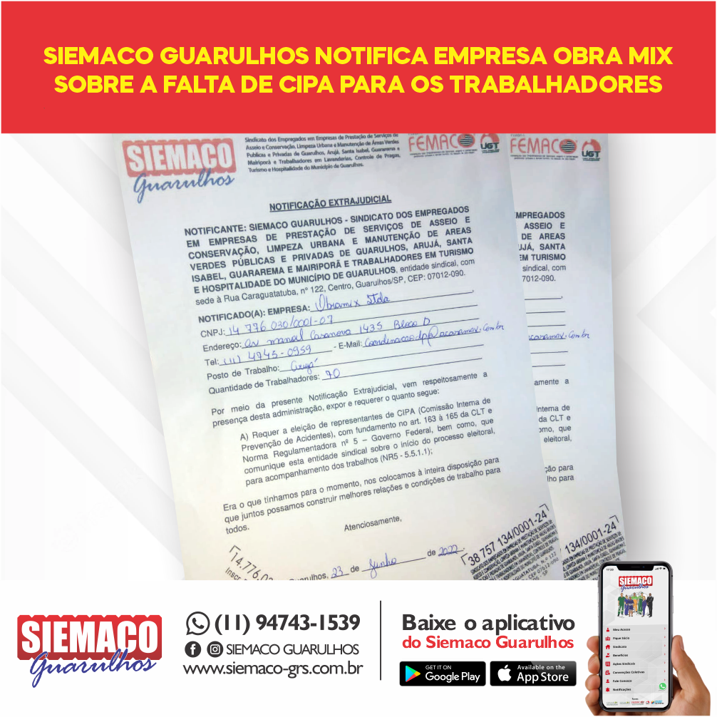 Em sua site oficial, o SIEMACO GUARULHOS divulgou o comparecimento da diretoria sindical à Obra Mix, após receberem denúncia sobre a inexistência de uma Comissão Interna de Prevenção de Acidentes (CIPA).