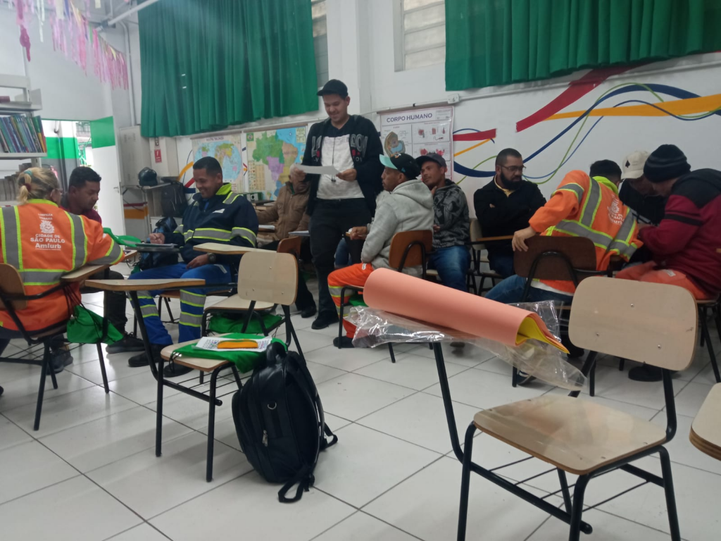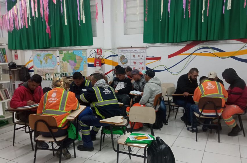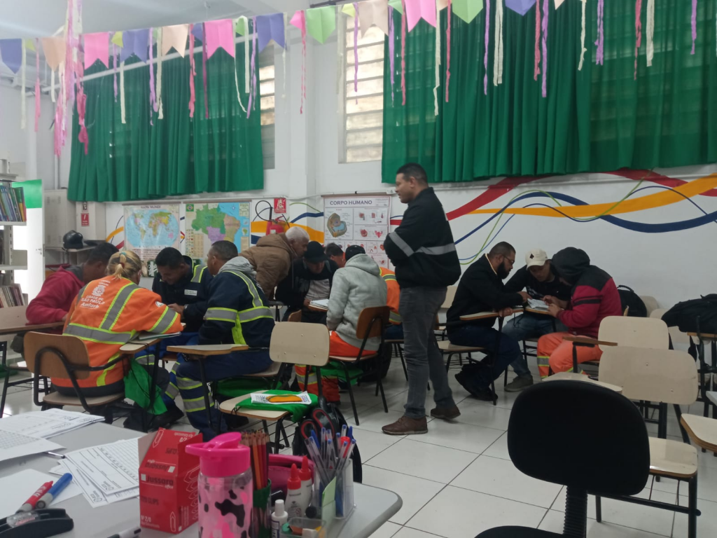 O Programa de Educação Continuada da Central de Cursos do SIEMACO São Paulo, direcionado a estimular trabalhadores e trabalhadores a retomarem os estudos por meio da Educação de Jovens (EJA), promoveu nesta terça-feira (27) um “Aulão de Matemática”. A sala de aula fica na garagem Socorro da EcoSampa e é uma parceria da empresa com o sindicato.