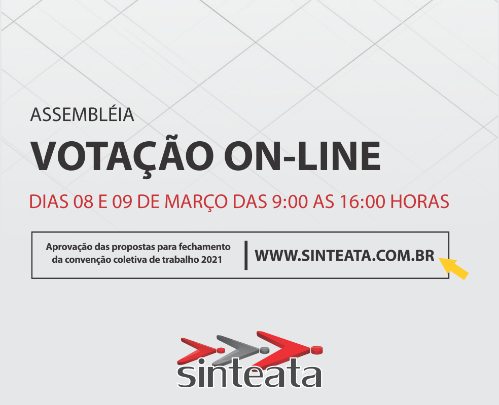 De acordo com as informações compartilhadas na página oficial do Sinteata SP no Facebook, os associados poderão votar a pauta de reivindicações da ‘Convenção Coletiva do Trabalho 2021’ on-line, através do site oficial do sindicato.