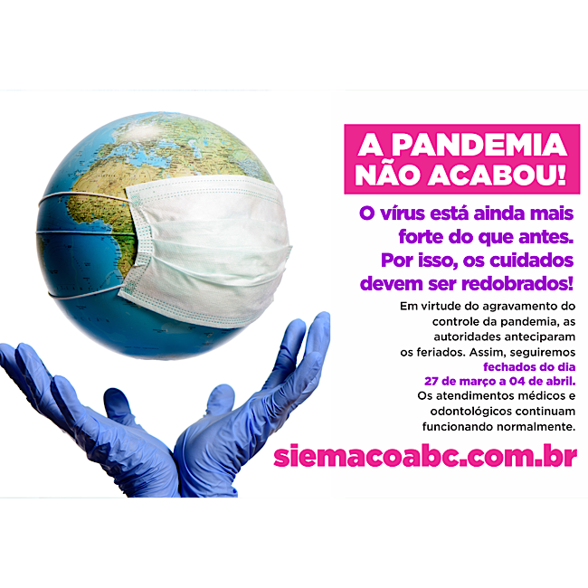 Em virtude dos agravamento da epidemia, as autoridades decidiram antecipar os feriados e desta forma, o Siemaco ABC permanecerá fechado até o próximo dia 04 de abril.