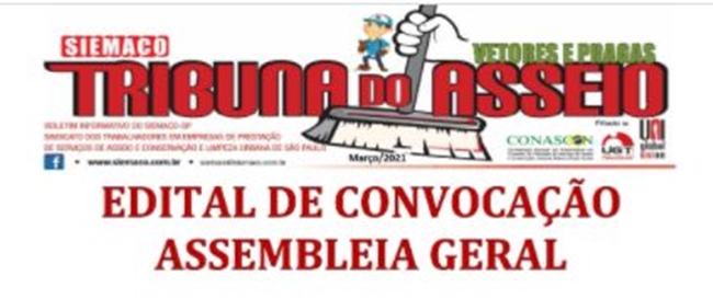 Em sua página oficial no Facebook, o Siemaco São Paulo anexou um edital convocando os empregados das Empresas Especializadas na Prestação de Serviços de Controle de Vetores e Pragas do município de São Paulo, associados ou não, a participarem da Assembleia Geral Extraordinária que será realizada de forma virtual, via plataforma ‘Zoom’, nos termos da Lei nº 14.010/20, bem como, nos termos do Ofício Circular SEI nº 1919/20/ME, no próximo dia 30 de março, ás 10h, para se discutir e deliberar a seguinte ordem do dia: